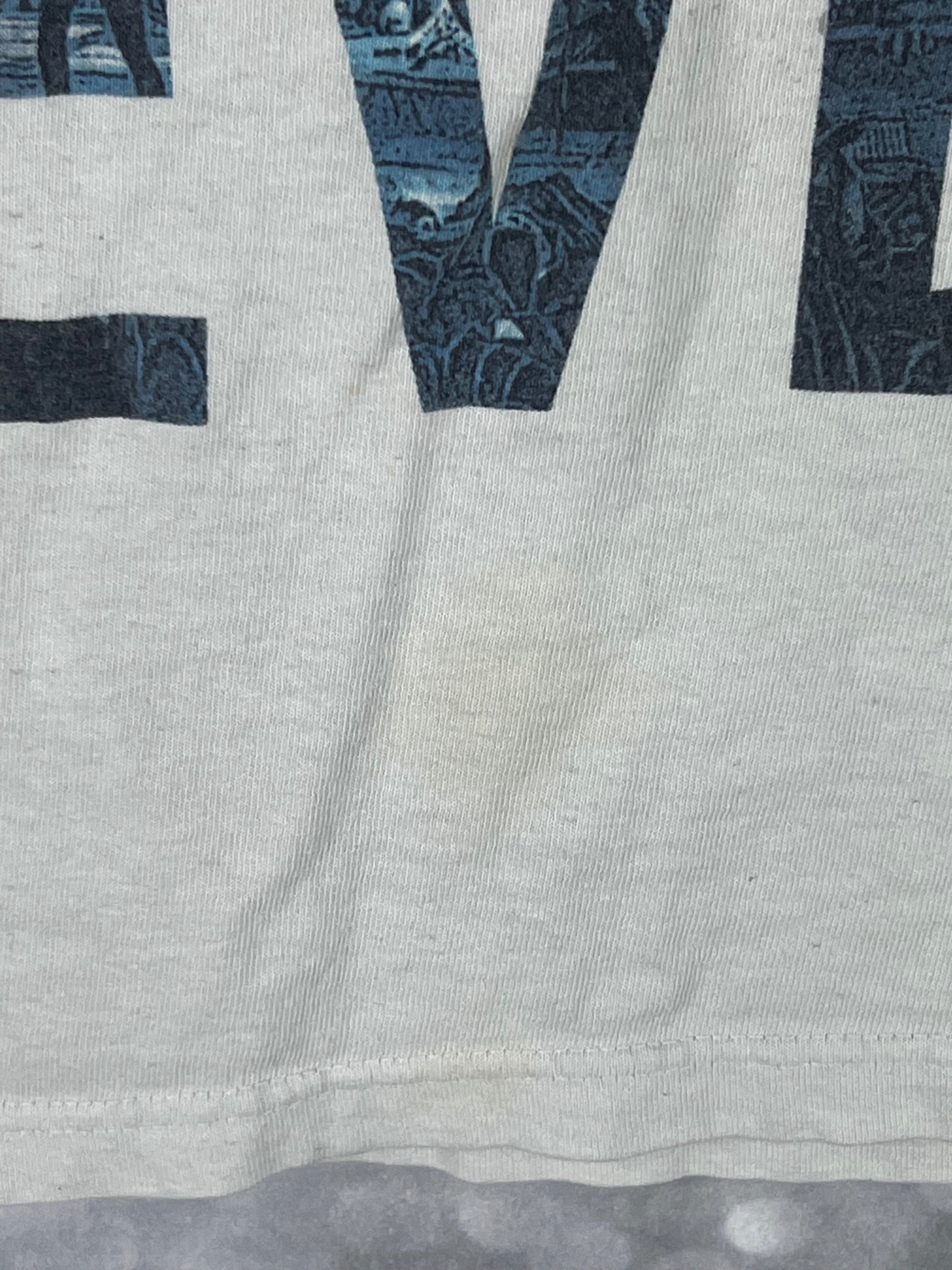 Metallica "Through the Never" Movie 2013 Concert Film T-shirt Men's Size Medium. This shirt has some minor discoloration under both arms (pictured) but not very noticeable. This is kind of a rare print of this shirt. I cannot find much about it anywhere online.
