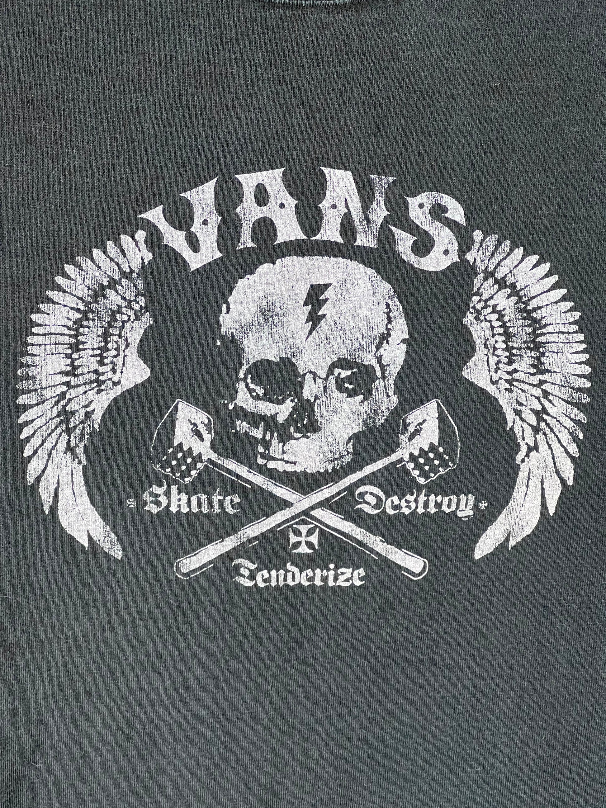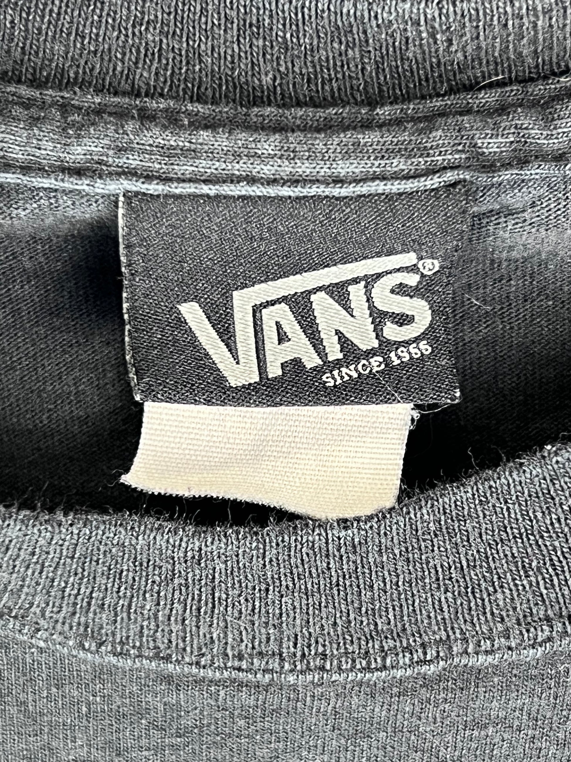 90’s VANS “Skate, Destroy, Tenderize” Shirt with a nice fade. The bottom tag is very faded and hard to read the size but seems to be a men’s small.